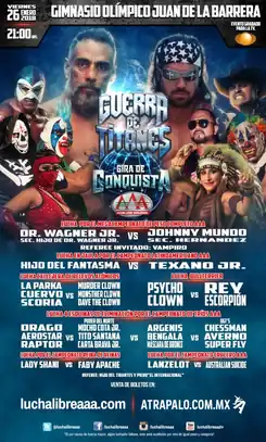 Guerra de Titanes (Spanish for "War of the Titans") was a major professional wrestling event scripted and produced by Lucha Libre AAA World Wide (AAA), a Mexican promotion. The event was the twenty-first annual Guerra de Titanes show which, until 2015, has traditionally been AAA's "end of the year" show. In 2016 the show was shifted from December to January instead. The show was held in Gimnasio Juan de la Barrera in Mexico City, Mexico which also hosted the 2016 and 2017 Guerra de Titanes shows.