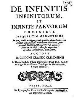 Dom Guido Grandi, O.S.B. Cam. FRS (1 October 1671 – 4 July 1742) was an Italian monk, priest, philosopher, theologian, mathematician, and engineer.