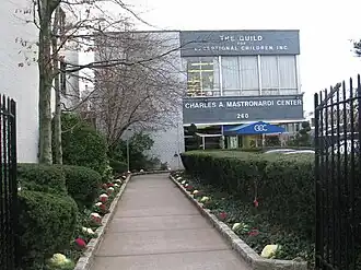 The Guild for Exceptional Children was founded in 1958, at a time when many public schools did not provide classes for some children with a disability. The founding president of the Guild for Exceptional Children was Olga DeFelippo (died November 3, 2005).[1] In 2001, the City of New York renamed part of 68th Street in Brooklyn, between Ridge Boulevard and 3rd Avenue, as "Guild For Exceptional Children Way."[2]
