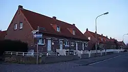 The Gummiinsel was built 1932-39 as part of the Nazi Siedlungspolitik, a programme of relocating parts of the urban populations in highly organized self-suffient suburban communities. The homes were small two-storey red brick houses with no basement, each with a small front yard. They were built within a concept similar to council houses as emergency shelters, especially for families of Yenish tradesmen, showmen, scrap merchants, second-hand dealers and descendants of regional Sinti families.[1]