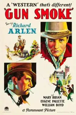 Gun Smoke is a 1931 American pre-Code Western film directed by Edward Sloman and written by Grover Jones and William Slavens McNutt. The film stars Richard Arlen, Mary Brian, Eugene Pallette, and William "Stage" Boyd. The film was released on April 11, 1931, by Paramount Pictures.[1][2]