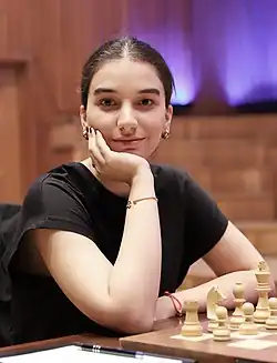 Gunay Vugar qizi Mammadzada[1] (Azerbaijani: Günay Vüqar qızı Məmmədzadə; born June 19, 2000) is an Azerbaijani chess player who holds the titles of International Master (IM) and Woman Grandmaster (WGM) through the International Chess Federation (FIDE). She has been an under-10 girls' World Youth Champion, and both an under-8 and an under-14 girls' European Youth Champion. Mammadzada is a two-time Azerbaijani women's national champion, which she achieved in 2017 and 2019. She has represented Azerbaijan at the Chess Olympiad, the World Team Chess Championship, and the European Team Chess Championship, winning both team and individual bronze medals at the latter in 2019. Mammadzada has a peak FIDE rating of 2483 and has been ranked as high as No. 18 in the world among women.