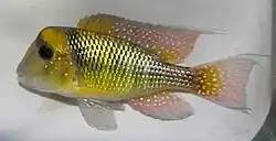 Gymnogeophagus mekinos is a species of geophagine cichlid. It inhabits parts of the Uruguay and Río Negro rivers. It is characterised by the absence of supraneural bones, the presence of a forward spine in its first dorsal fin pterygiophore, the absence of an oblique bar between the eye and nape, possessing a black marking near the dorsal fin origin that projects to its dorsum, as well as other features.[1]