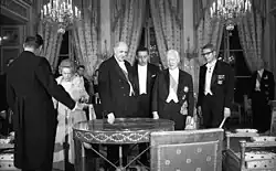 The Hôtel Beauharnais (French: [otɛl boaʁnɛ]) is a historic hôtel particulier, a type of large French townhouse, in the 7th arrondissement of Paris. It was designed by architect Germain Boffrand.[1] Its construction was completed in 1714.[1] By 1803, the structure was purchased by Eugène de Beauharnais,[1] who had it rebuilt in an Empire style. It has been listed as an official historical monument since July 25, 1951.[1] Today it serves as the official residence of the German Ambassador to France.[1]