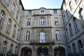 In the early 1970s, the council, led by the mayor, Antoine Gayraud, decided to acquire an additional building to accommodate the offices of council officers and their staff. The building they selected was Hôtel de Rolland located a few yards to the east on the north side of Rue Aimé Ramond. The building had been commissioned by Jean-François Cavaillès, who was the son of a local merchant, in the mid-18th century. Construction of the new building started in 1751. It was designed by Guillaume Rollin in the neoclassical style, built in rubble masonry and was completed in 1761. In 1815, the building was acquired by a lawyer, Antoine Joseph Gérard de Rolland du Roquan.[7] It passed down the Rolland family until it was bought by Crédit Agricole in 1924 and then by the council in 1978.[8][9][10]