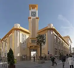 By the 1930s, the second town hall was too small and the council led by the mayor, Albert Tomey, decided to demolish it and to erect a new building, the third town hall, on the same site.[3] The new building was designed by the municipal architect, Jean Blanchard, in the Art Deco style, built by a local contractor, Noël Cazanave, in stone and was officially opened on 1 July 1936. It featured a square headed opening on the ground floor, a French door and a balcony on the first floor, and prominent square-shaped clock tower above, on the corner of Rue Courtejaire and Rue Aimé Ramond. After passing through the opening, and the concierge's office on the left, a marble staircase provided access to the Salle du Conseil (council chamber) and the Salle des Mariages (wedding room). Both these rooms are still in use for their original purpose.[4][5]