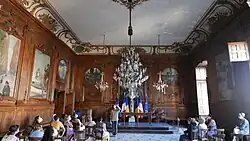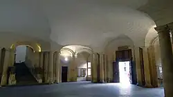 The grand staircase leading to the council chamber was flanked by statues of lions and originally featured a fine marble statue, known as the Venus of Arles, which dated from the 1st century BC and was discovered in the Roman Theatre of Arles in 1651. However, it has since been replaced by a replica: the original was placed in the Louvre in Paris.[8] The vestibule was notable for its shallow vaulting, which was conceived by Hardouin-Mansart and which has been described as "le chef-d'œuvre absolu de la stéréotomie française" ("the absolute masterpiece of French stereotomy").[9][10][11]