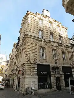 The city council initially held its meetings in the Halle aux Marchands, close to the Église Saint-Éloi, in the mid-12th century. It then met in a building on Rue du Gros-Horloge, previously belonging to Simon de Montfort, 5th Earl of Leicester, which was granted to them by Philip II in 1220.[2] After the second Hôtel de Ville became dilapidated, a third Hôtel de Ville was erected on Rue du Gros-Horloge to a design by Jacques Gabriel in the Renaissance style in 1607.[3] After nearly two centuries of use, the third Hôtel de Ville became inadequate and was sold for commercial use in 1796.[4][5] In the late 18th century, the city council was briefly accommodated in the Hôtel de la Première Présidence on Rue Saint-Lô, which had been designed by Jean-Jacques Martinet and completed in 1721.[6]