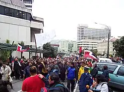 A hīkoi is a walk or march, and especially a protest march, in New Zealand. The word comes from the Māori language, and often implies a long journey taking many days or weeks.[1][2] The most famous hīkoi was the 1975 Māori land march, on which supporters and protestors travelled the length of the North Island, from Te Hāpua to Parliament in Wellington, organised by Whina Cooper.[3]