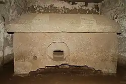 The Hōtōzan Kofun is located on the west bank of the Tone River. The tumulus is a hōfun (方墳), with square sides, built as a step pyramid in two tiers, 54 meters on each side, and a height of 12 meters. Neither fukiishi nor haniwa have been found. The burial chamber is a stone-lined chamber with a total length of 12 meters. The walls are made from rectangular megalithic blocks of andesite, which were once plastered and presumably decorated with paint. The stone sarcophagus is shaped like a house, and was placed perpendicular to the long axis of the chamber. It is presumed to have been built at the end of the 7th century AD, or at the very end of the Kofun period, when Buddhist ritual practices were supplanting the tumulus culture. No grave goods have been found.[2]
