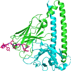 The HA-tag is a protein tag derived from the human influenza hemagglutinin (HA) protein, which allows the virus to target and enter host cells. An HA-tag is composed of a peptide derived from the HA-molecule corresponding to amino acids 98-106, which can be recognized and selectively bound by commercially available antibodies. This makes HA a powerful tool in molecular biology, commonly included in expression vectors and in the production of recombinant proteins. [1] Like other epitope tags, HA-tag is small and generally does not alter the traits of proteins it is attached to.[2] As a result HA-tags are often used to identify protein-protein interactions or to detect protein expression, using Co-Immunoprecipitation or Western blot respectively.[3][4]