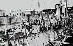 Pioneer was ordered to return to Australia on 8 August 1916, and was paid off on 7 November 1916.[11] Despite being "obsolete and decrepit" she saw more actual combat than any other Australian ship of World War I.[12] Pioneer returned to Garden Island and was used as an accommodation vessel until 1922.[11] She was handed to Cockatoo Island Dockyard for stripping in May 1923, was passed to the control of the Commonwealth Shipping Board in 1924, who then sold the hulk to H. P. Stacey of Sydney, in 1926.[11] The ship was scuttled off Sydney Heads on 18 February 1931.[11]
