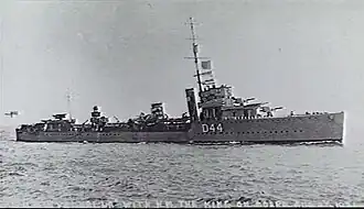 She was propelled by three Yarrow-type water tube boilers powering Parsons geared steam turbines developing 27,000 shaft horsepower (20,000 kW) and driving two screws for a maximum designed speed of 34 knots. She was oil-fired and had a bunkerage of 320 to 370 tons. This gave a range of 3,500 nautical miles at 15 knots.[1]