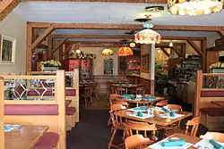 Haab's Restaurant was located in downtown Ypsilanti, Michigan, at 18 West Michigan Avenue. The restaurant had a bar area with an 30-foot-long (9.1 m) African mahagony bar and overhead ceiling fans, and two dining rooms. The decor was 19th-century with a pressed tin ceiling and features Tiffany lamps and heirlooms from the Haab family.[1] It had seating for 130.[2] The menu entrées were mainly steaks, chops, fried chicken and seafood, with the London broil being the most popular menu item.[2][3][4] The front entrance displayed an article in Monthly Detroit about Detroit area steakhouses in which the author named Haab's as his favorite