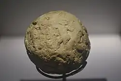 Twelve protoliterate tokens (10 spheres and 2 disks) were found at the site. They were inside a clay Uruk period bulla, the only one recovered in Turkey, sealed with two cylinder seals.[7][8][9] Other Uruk finds included Beveled rim bowls and bitumen dipped baked clay wall cones.[10] Bitumen was used for a variety of purposes at the site throughout the 4th millennium BC.[11][12] A single fragmentary slab at the Uruk site of Hacınebi has been proposed as a numerical tablet, a predecessor of Proto-cuneiform. A blank tablet was also found.[13]