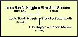 Eila Haggin McKee's grandfather, the Gold Rush tycoon James Ben Ali Haggin, collected art to decorate the walls of his 61-room Nob Hill mansion. However, it was her father, Louis Terah Haggin, and her mother, San Francisco socialite Blanche Butterworth Haggin, who assembled the majority of the Haggin Collection. Louis and Blanche both spoke fluent French and maintained a residence in Paris, where they entertained artists, writers, and European nobility. Their growing collection came to fill their homes in San Francisco, Paris, and New York City.[8]
