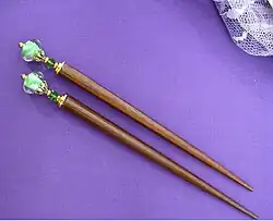 Hair sticks have been in use for thousands of years, and have been found in cultures of the ancient Egyptians, Romans, and Greeks, India and China. Although some of these have been jewelled, luxury items, such as the gold hair sticks of Egypt,[1] more common, wooden hair sticks have also been found in cultures such as Rome,[2] suggesting that they were in wide use amongst people regardless of their financial standing. However, the most influential culture on modern hair sticks has been Japanese, and in particular the use of decorative Japanese kanzashi.