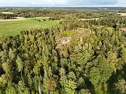 Hakoinen Castle (Hakoisten linnavuori in Finnish) is the ruins of a fortification on a hill in Janakkala, Finland. Dated to the medieval period, the fortification was situated on a very steep-sided rock by Lake Kernaala (Kernaalanjärvi) in a manner reminiscent of the hill fort tradition. The top of the rock is 63 metres (207 ft) above the water level of the lake. Today very little remains of the castle. Equally little is known about its origins.