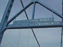 The Hal W. Adams Bridge, built in 1947, is a historic bridge that carries State Road 51 across the Suwannee River between Lafayette and Suwannee counties, Florida in the United States. Located 3 miles north of Mayo, it was the first suspension bridge built in Florida, and the only one to carry highway traffic. At its opening on July 4, 1947, it was named for Hal W. Adams of Mayo, former county judge of Lafayette County and then longtime circuit judge for the circuit encompassing Lafayette and Suwannee counties.[2] [3]