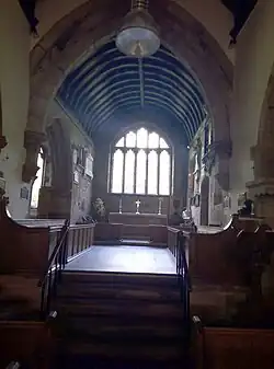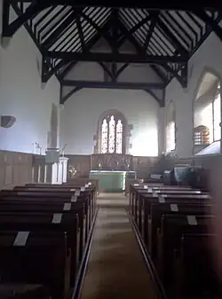 Building and possibly rebuilding continued for some years, as early in 1223 Brian de Lisle was instructed to have made for the bishop sixty copula de cablecio from the royal Forest of Kinver for the "refurbishment of his church of Hales."[9] Evidently the matter was considered important, as a second set of more detailed instructions were issued to Brian on 23 May, raising the possibility of buying the items ready-made.[10] Although the Victoria County History account mentions the grant,[11] it does not explain what the items actually were. Copula de cablecio suggests some sort of couplings or ties, possibly rafters, joists or other structural members. In connection with the grant of wood, instructions were also issued to Brian on 5 June to procure for the abbey, with minimal damage to the woodland, sufficient wood for four fires to melt lead,[12] indicating that roof work was under way: rather than a repair, this was perhaps lead covering to replace an earlier, temporary roof.