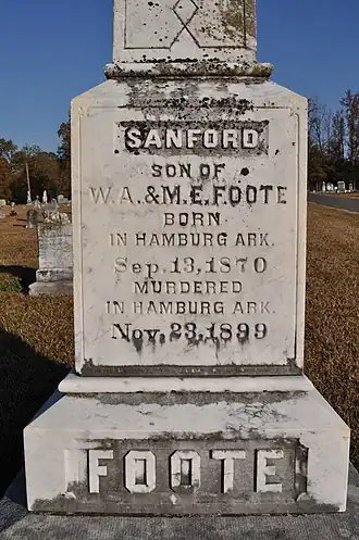 2. ^ a b "NRHP nomination for Hamburg Cemetery, Historic Section". Arkansas Preservation. Retrieved January 21, 2014.