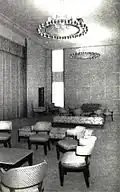 Many features of the interior design were designed by NWL architects.[13] The interior features murals, glass and crystal chandeliers, and gold detailing designed to create a spiritually uplifting environment.