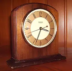 The Hammond Clock Company was founded in 1928 to produce and market clocks that were equipped with Hammond's new motor. The Hammond clock factory manufactured more than 100 different clock models, some simple and cheap, others made from expensive materials such as marble and onyx.[4] Hammond employed well-paid toolmakers who created sophisticated tools to stamp out the various components of his clocks, which could then be assembled in a belt operation by unskilled laborers.[5] In addition, Hammond licensed his invention to other clock makers such as Waterbury, Sessions, and Ingraham.