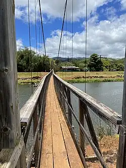 Near its mouth in Hanapepe, the river passes under the Hanapepe Swinging Bridge. The footbridge was built in 1911 to provide Hanapepe residents with a way to cross the river, and was restored in 1992 after Hurricane Iniki. Considered a local tourist attraction, the bridge is popular with children due to its tendency to rock back and forth.[10]