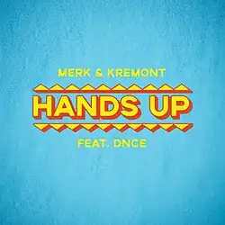"Hands Up" is a song by Italian record producer duo Merk & Kremont, featuring a guest appearance from American band DNCE. It was released through Universal Music Group Italy as a single on 6 April 2018. Production was handled by duo members Merk and Kremont, Eugenio Maimone, and Simon Says, while the vocals were solely handled by DNCE's lead singer, Joe Jonas. The producers and Jonas wrote the song alongside Josh Record, Ant Whiting, BullySongs, and Emily Phillips. The song debuted and peaked at number 56 in the duo's home country of Italy and was also certified platinum.