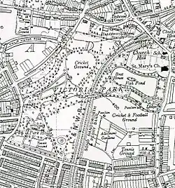 The first part of Handsworth Park was laid out to the west of the original London and North Western Railway[2] and was opened on 25 December 1890 despite initial opposition. At a public meeting in the council offices off Soho Road on 11 January 1887, the Rector of St. Mary's Church, Handsworth Dr. Randall, who could be seen as the voice of receding rural Staffordshire against the spreading metropolis of Birmingham, rose amid the uproar to make what the Handsworth News reporter, with irony, called the speech of the evening: "Allow me to say that from my heart I am the last man in the parish to stand between any object which is for the welfare of the people of the parish. It is because I don't think it is for the well-being that we should have the park that I lift up my voice against it. We have an agricultural parish, and we have some of the finest air in the kingdom, and I believe that the park will be more for the benefit of the roughs of Birmingham." This view was described by the reporter as being received with "a perfect howl of dissent, uproar for at least a minute and cries of 'shame' followed by alternations of groaning and cheering". (Baddeley 1997)