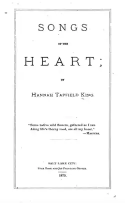 - ^ Reed, Leonard (1 September 2012). ""As a Bird Sings": Hannah Tapfield King, Poetess and Pioneer". BYU Studies Quarterly. 51 (3): 101. Retrieved 1 October 2017.