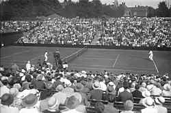 The German team led by Moldenhauer would win that tie against the Italy and also defeated Czechoslovakia in Prague, where Moldenhauer won two rubbers, including the doubles, partnering Prenn.[4] This put Germany into the 1929 European Zone final against Great Britain, which they won 3-2, with Moldenhauer winning a singles rubber over Bunny Austin.[4] They were then whitewashed in the Inter-Zone final by the United States.[4] Moldenhauer lost all three of his rubbers, one of which was against Bill Tilden.[4] It was Moldenhauer's final International Lawn Tennis Challenge appearance, meaning he finished with 14 career wins, from 22 matches.[4]