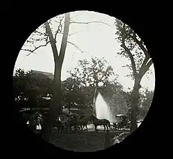 Hanscom Park, located at 1899 South 32nd Avenue, was developed by the City of Omaha in 1889 as one of the first by the newly formed Park Commission. After paying a landscape architect $913.30 for plans to improve the rough tract of land, the Commission reported the park was, "radically changed in plan and very greatly improved... Two lakes, a cascade, extensive flower beds, two and one-half miles of macadamized roadway, fountains and a magnificent growth of forest trees makes this the only finished park in the city." Design elements from that time have survived.[8] The Brandeis Indoor Tennis Courts facility is also located within the park property. The park is bordered on the East by Park Ave and the West border is 32nd Ave. The North border for the park is Woolworth Ave and the South border is Ed Creighton Ave.
