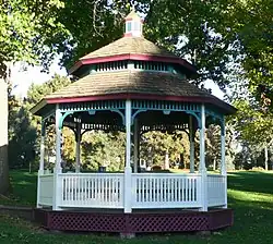 Hanscom Park is one of the oldest residential subdivisions in Omaha. Andrew J. Hanscom and James Megeath donated the 50-acre (200,000 m2) park in October 1872. Hanscom bought the land from Colonel Sam Bayliss, one of the original homesteaders in Omaha City in 1854.[4] When the community was developed through the 1890s, it was on the western fringe of Omaha. The site was ideal for an upscale development because of its access to a new electric trolley line connecting it with downtown.[5]