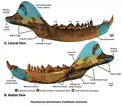 3. ^ Luo, Zhe-Xi; Gates, Stephen M.; Jenkins Jr., Farish A.; Amaral, William W.; Shubin, Neil H. (16 November 2015). "Mandibular and dental characteristics of Late Triassic mammaliaform Haramiyavia and their ramifications for basal mammal evolution". PNAS. 112 (51): E7101-9. Bibcode:2015PNAS..112E7101L. doi:10.1073/pnas.1519387112. PMC 4697399. PMID 26630008.