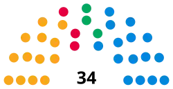 Since the last boundary changes in 2019 the council has comprised 34 councillors, representing 19 wards, with each ward electing one, two or three councillors. Elections are held every four years.[30]