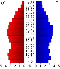 The age distribution was 23.10% under the age of 18, 7.90% from 18 to 24, 26.60% from 25 to 44, 26.40% from 45 to 64, and 16.10% 65 or older. The median age was 40 years. For every 100 females there were 96.70 males. For every 100 females age 18 and over, there were 92.20 males.