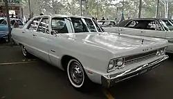 1969 Australian Dodge Phoenix four-door sedan has a B-pillar and painted window frames