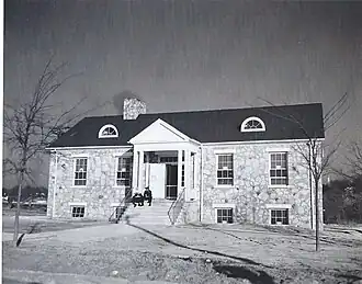 In 1937 a race riot occurred which caused police to become more heavily armed. Despite this setback, the government approved the building of the Negro Community Center in 1938, and Black stonemasons and carpenters began building in 1940. The land where the center would be constructed was purchased by the Town of Chapel Hill on September 8, 1939. It was deeded to the town on July 29, 1940, on the condition that it be used as a community center for black people. The original construction of the center was supported by a $16,000 grant from the Works Progress Administration, a New Deal agency. After determining that the WPA funds would be just enough to cover basic construction costs, over 400 local residents made donations to supplement the grant and provide additional funds to complete the project.[6][7] Original plans for the center included a nursery for working mothers, kitchen, woodworking shop, event hall, club rooms, a headquarters for a local nurse, and showers that were to be open to all in the community. Construction officially began on January 9, 1941.[5]