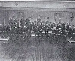 In August 1942 the Navy's Carolina Flight School's All-Negro Band arrived to Chapel Hill. The 40-man unit was made of sailors from all over the state. After being made a permanent addition to the flight school, the band played at naval functions. After being denied housing on campus because of their race, it was decided that the members would take up residence in the Negro Community Center.[8]