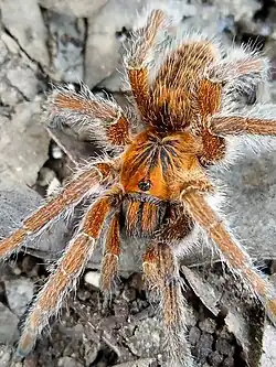 Harpactira cafreriana otherwise known as the Cape copper baboon or amber baboon tarantula spider was first described by Charles Athanase Walckenaer in 1837. It is found in South Africa, being terrestrial or semi-fossorial in nature.[1]