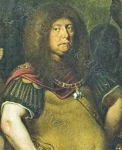 In 1634, Frederik Parsberg sold the estate to Niels Lykke. He significantly increased the size of the estate. In 1638, Harrestedgaard was sold to admiral Jørgen Vind, who was killed in the Battle of Colberger Heide. Harrestedgård then passed to his three sons. In 1674, Holger Vind bought out his two brothers. In the same year, he also established another manor, Gjeddesdal, naming it after his wife, Margrethe Ovesdatter Wind (née Gjedde, 1637–1706), a daughter of Ove Gjedde.[3] In 1676, he was granted royal permission to shot downdown the village of Harrested. All the land was subsequently placed directly under the manor.[4] In 1679, Holger Vind was appointed as Vice-Chancellor of Danske Kancelli.