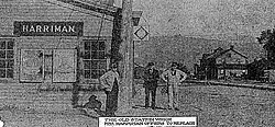 The 1873 station depot as photographed with the HARRIMAN name sign in June 1910 during the naming debates between Turner and Harriman