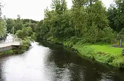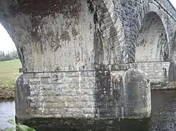 The enclosing of the estate by a boundary wall in the 1780s necessitated the deviating of the route of the original Naas to Dunlavin turnpike road,[32] which until that point had passed right in front of the house, crossing the Liffey by the old 1600s bridge.[19] This rerouting of the main road to outside the perimeter of the demesne required the construction of a new bridge downriver, which was completed in 1788 and cost La Touche "upwards of £1,000" to construct.[29] A plaque installed on the bridge that year to commemorate its construction is still in place as of 2025.[33][34]