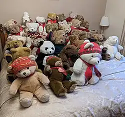 Since 1986, a bear has been released every year released in time for Christmas. Each bear wears a different outfit and care is taken to ensure that each year's bear is different to those from previous years.[3] In the early years, the bears did not have names. The first named bear, William, was released in 2003.[4] Since then, every bear released has his own name which is decided from a shortlist and is accompanied by a tag telling his story.[3] As the popularity of the bears grew, consumer demand led to all bears from before 2003 being retroactively given names[1]