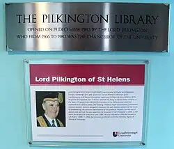 Plaque at the Pilkington Library, Loughborough University