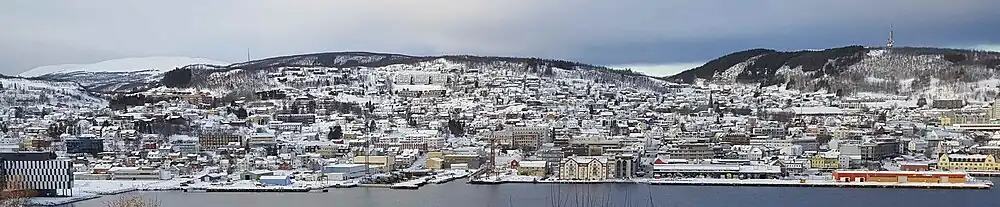 Harstad (Norwegian: [hɑ̂ʂtɑ] ⓘ; Northern Sami: Hárstták)[5][6] is a city[1] in Harstad Municipality in Troms county, Norway. The city is also the administrative centre of Harstad Municipality. The 11.46-square-kilometre (2,830-acre) city has a population (2023) of 21,289 (31,404 in the Urban area) and a population density of 1,858 inhabitants per square kilometre (4,810/sq mi). [2] It is the second-largest town in Troms county, after the city of Tromsø, and it is the largest town in Central Hålogaland.[7]