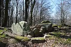 The site, on the western slope of the Hartberg north of Schankweiler, dates from around 3000 BC. It is the only Neolithic tomb of this type in Rhineland-Palatiate. It is a gallery grave, with two chambers, formed from sandstone slabs and blocks, the main chamber measuring around 2 by 1.2 metres (6 ft 7 in by 3 ft 11 in). The entrance to the tomb is an incomplete slab with part of a circular opening about 70 centimetres (28 in) in diameter. There is the lower half of a slab separating the main chamber and a poorly preserved antechamber. There were originally roof slabs, and the grave was probably once covered with a mound.[1][2][3]