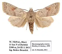 Harutaeographa cinerea is a moth of the family Noctuidae. It is found in Nepal.[2]