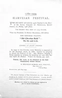 | Purpose | To celebrate the life and work of William Harvey and to encourage convivial relations between members of the medical profession |